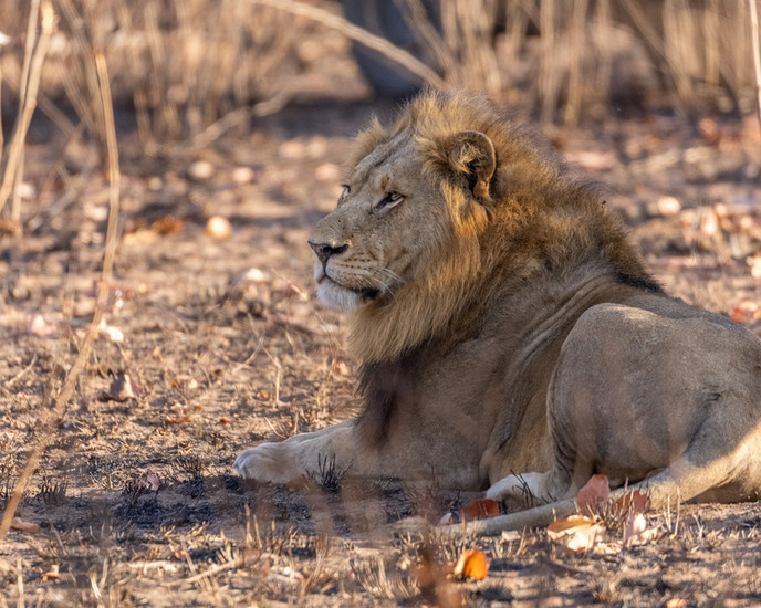 Majority of our afternoon safari was spent with a large male Lion (Plains Camp coalition). At first he was resting along the Manyeleti River in close proximity to a large herd of Elephants. At one point it seemed as if the Elephants were going to walk straight towards him, and so we prepared ourselves for some action. But the Elephants chose a different route and left him in peace. We later followed him as he went along walking on the road for quite some time. Our guests had multiple opportunities to photograph him head-on as he did so. Watching a large male Lion walking straight towards you is a hair raising experience, and one which left smiles on all of our faces.